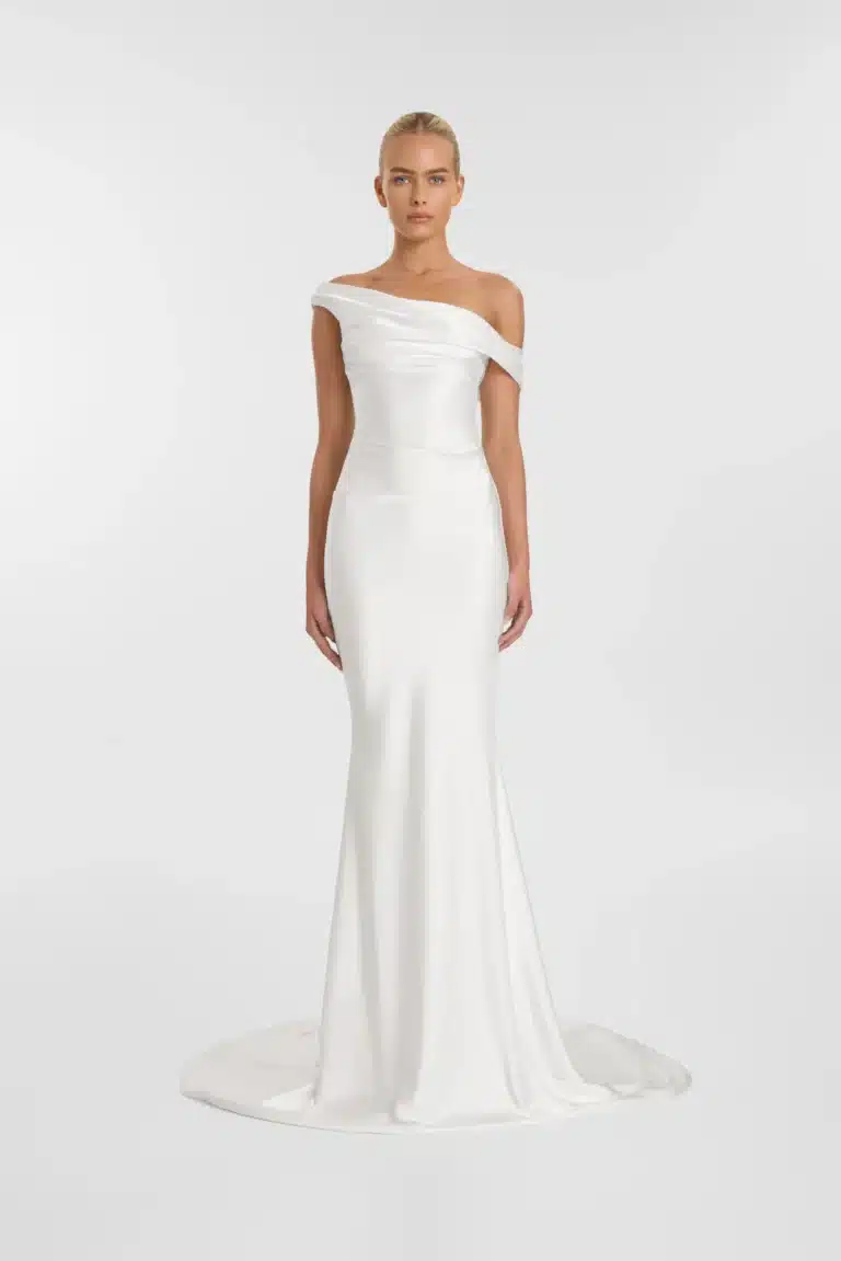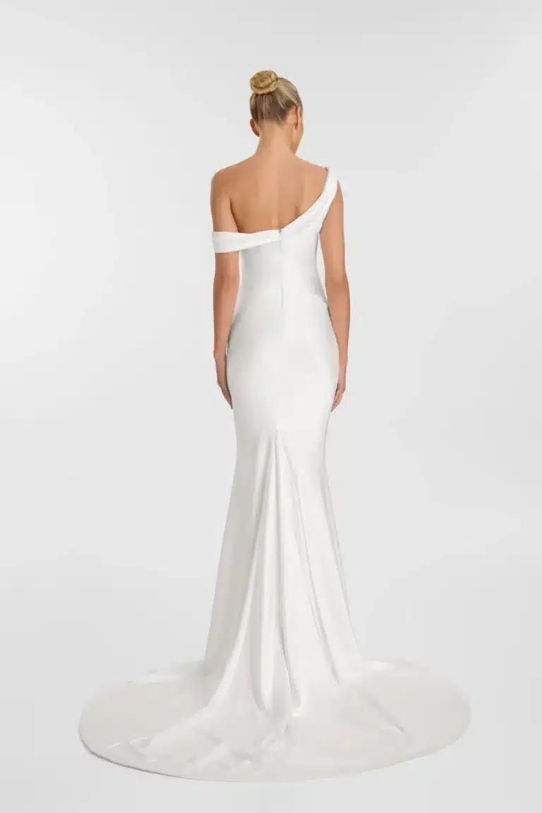 Mit einem asymmetrischen Dekolleté ziehst du alle Blicke auf dich – modern, raffiniert und absolut besonders. Unsere asymmetrischen Brautkleider bei Brautblüte stehen für Individualität, Stärke und einen unkonventionell schönen Brautlook. Ideal für Bräute, die ihren eigenen Stil leben.