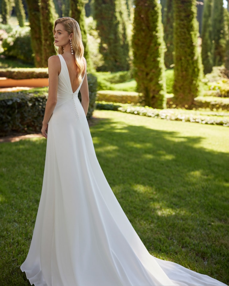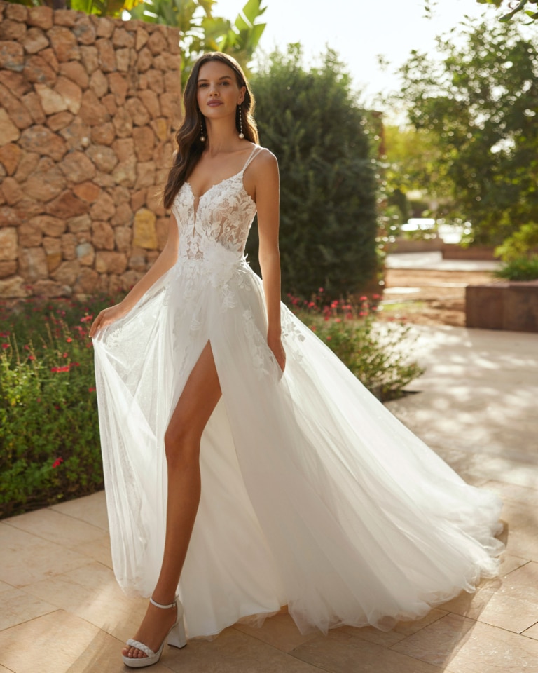 Adriana Alier entwirft Brautkleider, die Moderne und Romantik harmonisch verbinden – von eleganten Meerjungfrauen-Silhouetten über klassische Prinzessinnen-Modelle bis hin zu schlichten Crepe-Designs mit satten Details. Spitze, Crepe, Tüll und Glitzerelemente sorgen für feminine Akzente, während tiefere Ausschnitte und Rückenausschnitte subtile Sinnlichkeit verleihen. Die Kleider wirken glamourös und trotzdem zugänglich, ideal für die Braut, die Stil ohne Übertreibung sucht.