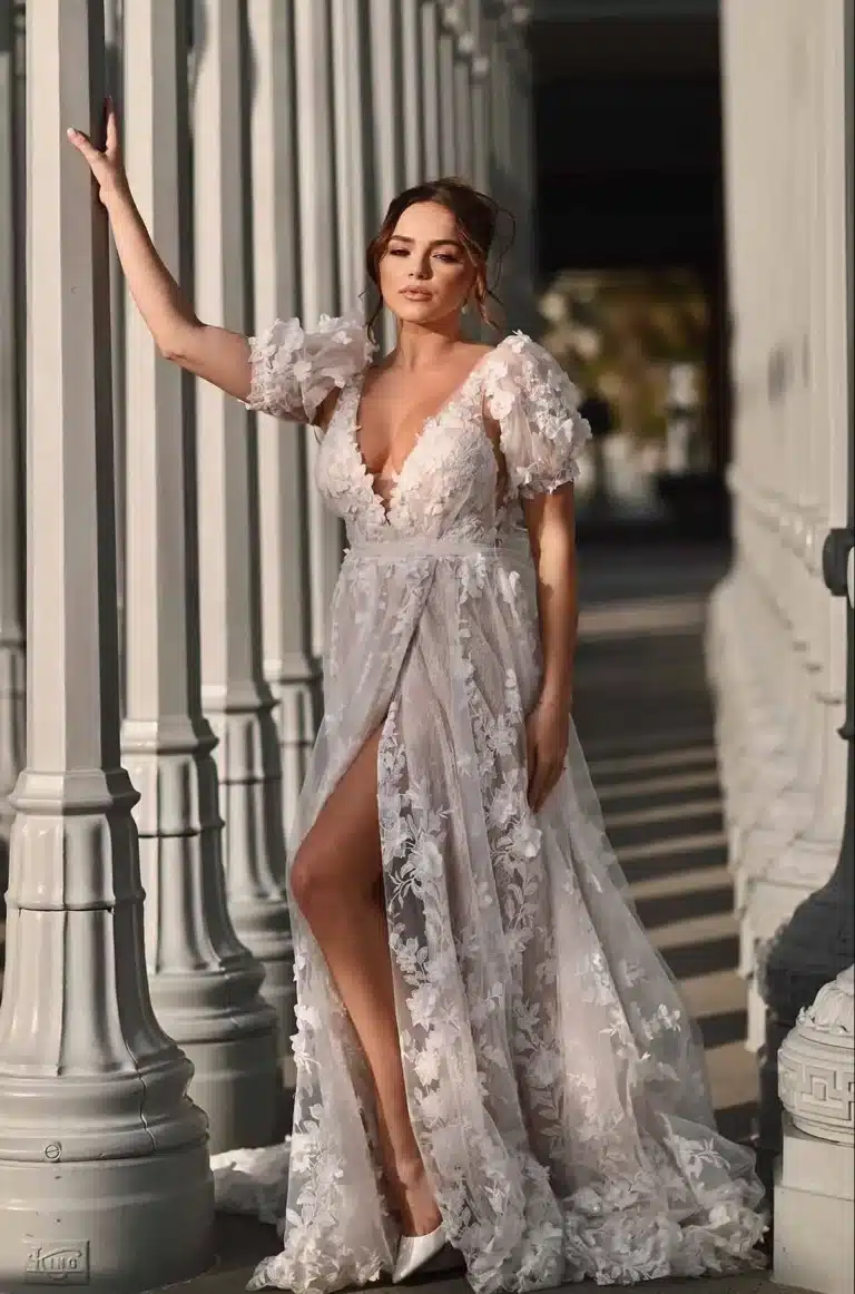 *Der Designer bietet keine Möglichkeiten zur Individualisierung vom Werk aus an, z.B. die Änderung des Ausschnitts. Falls du dich in ein Kleid der Brand verliebst und Änderungswünsche hast, beraten wir dich sehr gerne, welche Änderungen nachträglich eine Schneiderin umsetzen kann.