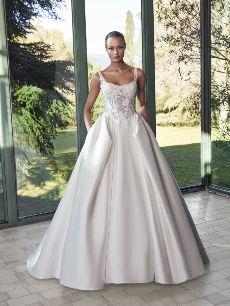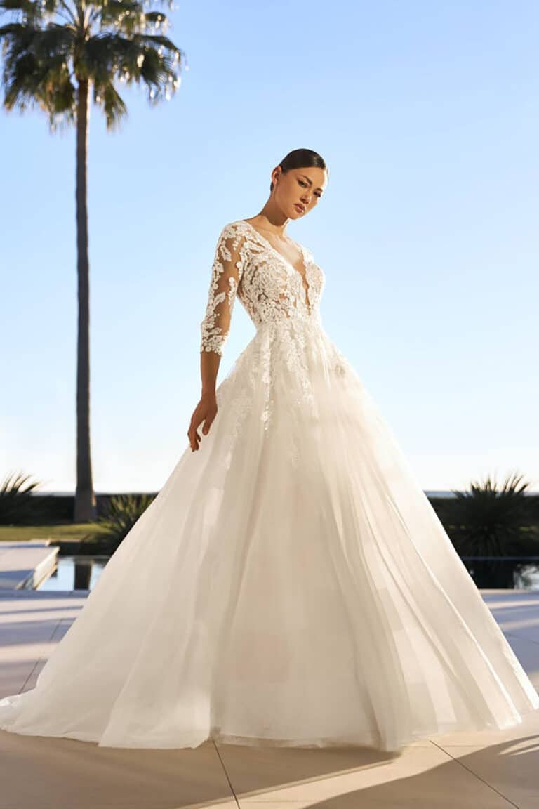 PRONOVIAS ist ein Familienunternehmen, das seinen Ursprung im “El Suizo” hat, einem renommierten Geschäft in Barcelona, das 1922 von Alberto Palatchi Bienveniste gegründet wurde und auf Spitzen, Stickereien und hochwertige Seidenstoffe spezialisiert war. Was als Familienunternehmen begann, sollte sich später zu Pronovias entwickeln. Als Alberto Palatchi Ribera 1964 in das Unternehmen eintrat, leistete er Pionierarbeit bei der Kreation der ersten Prêt-à-porter-Brautmode – eine Revolution zu jener Zeit, die Brautkleider für alle Frauen zugänglich machte. Seit dem hatte sich PRONOVIAS immer internationaler aufgestellt und ein Netzwerk von über 50 Franchise-Geschäften entwickelt. 2017 kaufte schließlich die Investmentgruppe BC Partners das bis dahin eher familiär geprägte Unternehmen, um seinen Expansions- und Wachstumsplan zu starten. Zu der PRONOVIAS Gruppe gehören auch die Marken St. Patrick, White One, Nicole, Vera Wang sowie Ladybird.