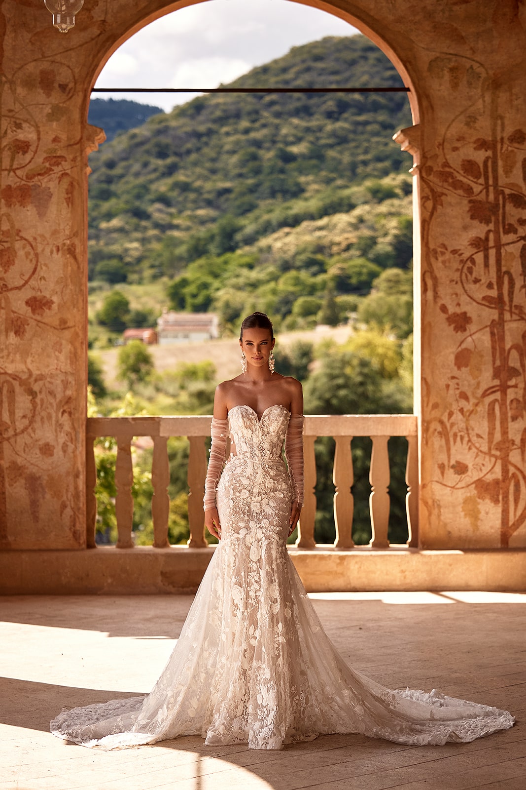 Der Wow-Effekt ist in dieses glamouröse Kleid eingenäht. Das Brautkleid Ellyse umschmeichelt die Figur mit seiner klassischen Meerjungfrauen-Silhouette. Ein Kleid, das die Anmut und das Selbstbewusstsein seiner Trägerin unterstreicht und alle Blicke auf sich zieht. Filigrane Blumen-Spitze schmückt den Stoff vom Herzausschnitt bis über die lange Schleppe, während gewagte seitliche Ausschnitte einen Hauch Haut preisgeben. Abnehmbare Tüllärmel bieten vielseitige Styling-Optionen, die den dramatischen Charakter unterstreichen.